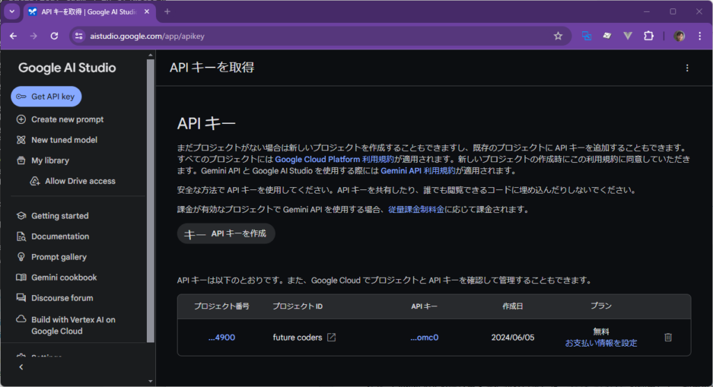 GeminiはGoogle社の生成AIです。これもPythonから実行してみましょう。Googleでも同様にAPIキーが必要になります。